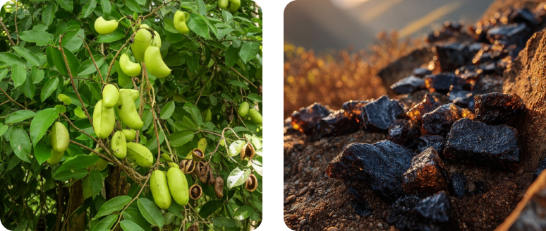Our Shilajit is a high-altitude resin sourced from the Kumaon region of the Indian Himalayas - renowned for its mineral-rich terrain and traditional Ayurvedic harvesting areas. This is not a powder, it’s pure live resin, rich in fulvic acid (79.21%) and containing over 84 trace minerals, and naturally occurring DBPs (Dibenzo-a-pyrones) preserving the full spectrum of earth-born compounds in their most bioavailable state. Nothing isolated, nothing lost.