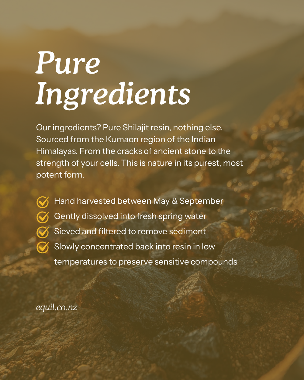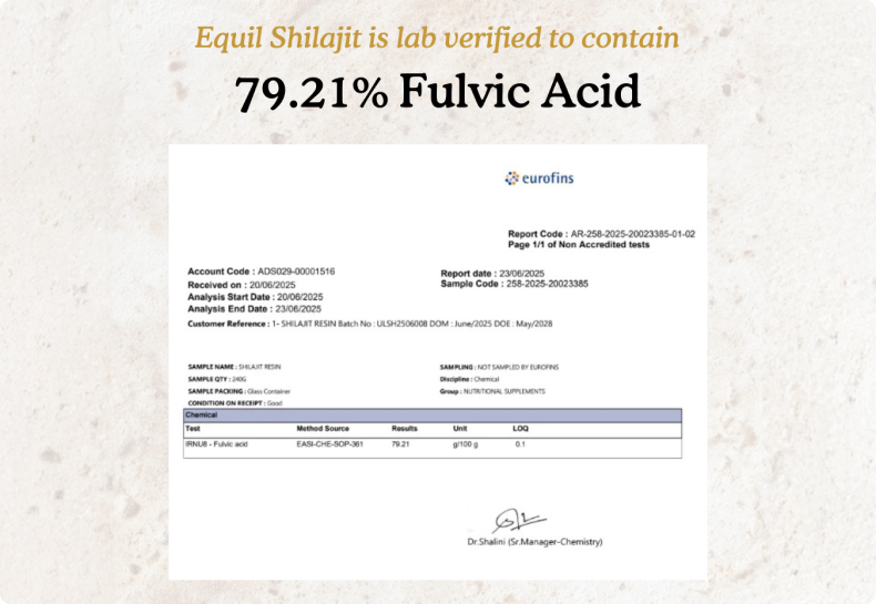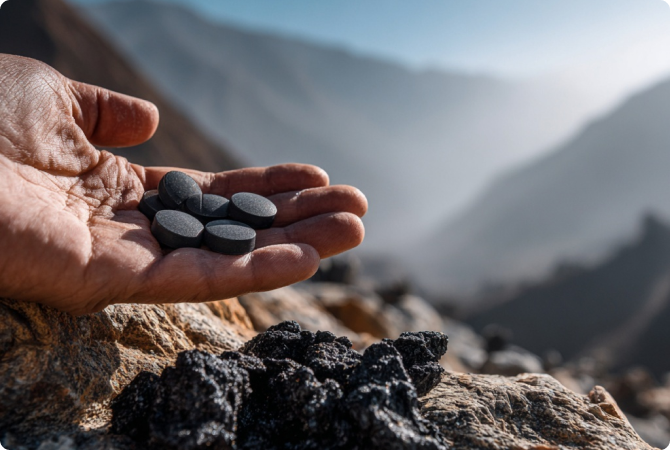 From the Kumaon Himalayas, tested for purity, safety, and >75% fulvic acid content.